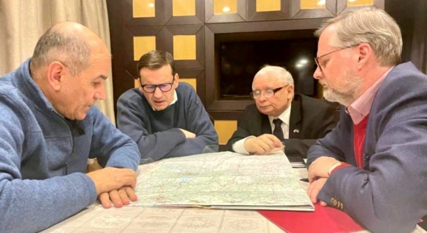 Premierii au sosit în capitala Ucrainei în numele Consiliului Uniunii Europene, a spus Shmîal pe Twitter, lăudând ”curajul prietenilor adevărați”.