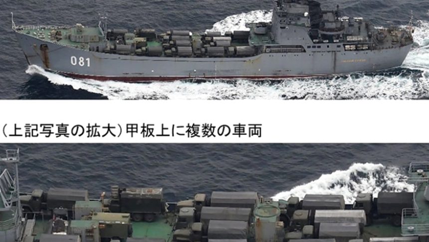 O patrulă maritimă japoneze a detectat prima oară marți vasele rusești, care pot fi încărcate inclusiv cu tancuri și sute de militari. Japonia a monitorizat navele în parcursul lor prin strâmtoarea Tsuruga, care separă principala insulă a arhipelagului, Honshu, de Hokkaido, insula din nord.
