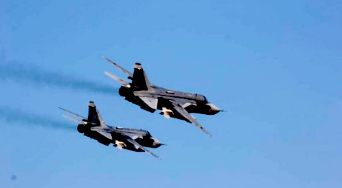 Jurnaliștii spun că est vorba despre 4 aeronave, 2 aeronave de atac Sukhoi, escortate de alte două avioane de luptă Sukhoi 27.