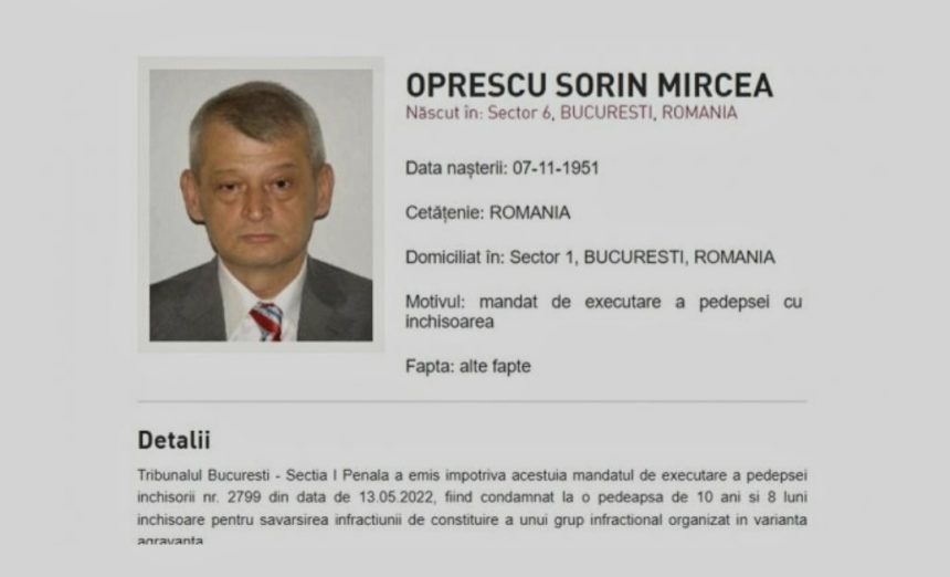 Sorin Oprescu a fost dat în urmărire generală de Poliția Română, după ce agenţii nu l-au găsit la adresa de domiciliu pentru a-l duce la închisoare.