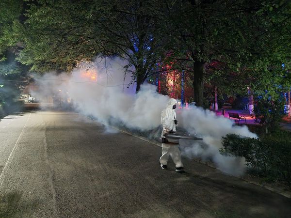 Lucrările de dezinsecție se desfășoară în trei etape, timp de 90 de zile, fiind efectuate cu un termonebulizator pe bază de ceață caldă și atomizoare.