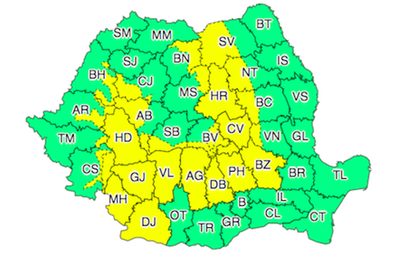 În intervalul menționat, în zona montană, în cea mai mare parte a Olteniei și local în Muntenia, vor fi perioade cu instabilitate atmosferică accentuată, care se va manifesta prin averse torenţiale, descărcări electrice, intensificări ale vântului și izolat vijelii şi grindină. Cantitățile de apă vor depăși 25…30 l/mp și pe alocuri 40 l/mp.