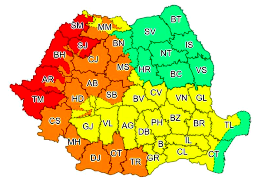 Cinci judeţe din vestul ţării se vor afla sâmbătă sub o avertizare Cod roşu temperaturi extreme şi disconfort termic deosebit de accentuat.