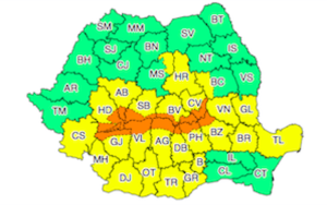 Meteorologii au emis o avertizare cod galben și o avertizare cod portocaliu de instabilitate atmosferică , vor fi perioade cu averse torențiale, intensificări ale vântului, vijelii puternice, viteze la rafală de peste 80…90 de km pe oră și cantități de apă care pot depăși 25 de litri pe metru pătrat.
