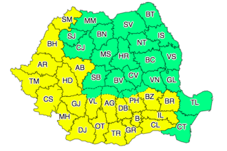 Meteorologii au emis o avertizare cod galben și o avertizare cod portocaliu de instabilitate atmosferică , vor fi perioade cu averse torențiale, intensificări ale vântului, vijelii puternice, viteze la rafală de peste 80…90 de km pe oră și cantități de apă care pot depăși 25 de litri pe metru pătrat.