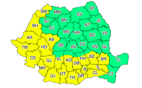 Administraţia Naţională de Meteorologie a emis astăzi un Cod galben de căldură și disconfort termic pentru mai multe județe din țară.