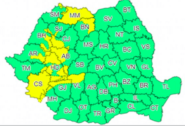 În intervalul menționat, local în Maramureș, Banat, zona montană a Olteniei, în Carpații Occidentali și nordul Carpaților Orientali vor fi perioade cu averse, însoțite pe alocuri de descărcări electrice.