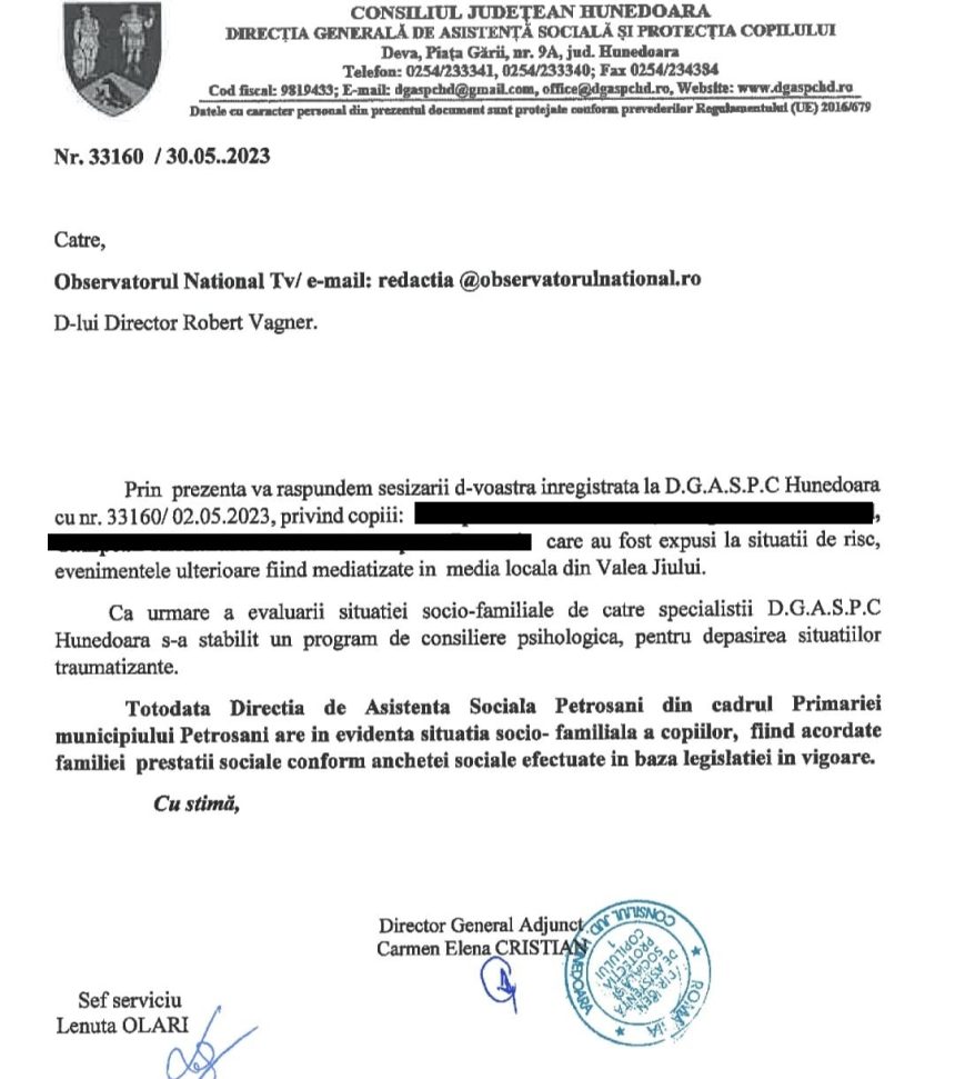 Pe de altă parte, DGASPC Hunedoara a mai precizat că minorii sunt ajutați de instituțiile de ocrotire ale statului, pentru că altfel ar fi într-o altă situație de risc.