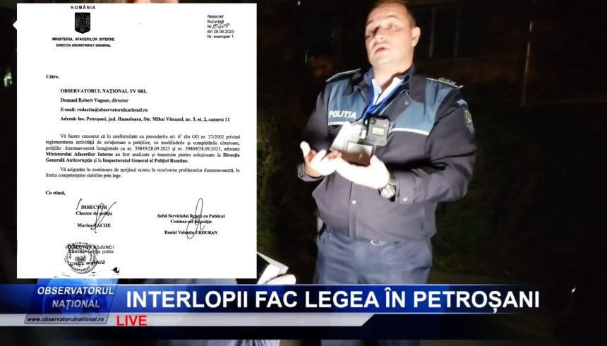 Ministerul Afacerilor Interne a luat act de derapajul extrem de grav al unor polițiști din cadrul IPJ Hunedoara- Poliția Petroșani, care au intervenit brutal în timpul unei emisiuni a publicației Observatorul Național TV, desfășurată pe domeniul public și cu respectarea legislației. Ministerul a sesizat Inspectoratul General al Poliției Române pentru a efectua cercetări în legătură cu acest derapaj grav al polițiștilor.Ministerul a sesizat și Direcția Generală Anticorupție, pentru că sunt suspiciuni rezonabile cu privire la unele acțiuni ale unora dintre polițiști. Cele două organisme vor trebui să dispună măsuri ferme după finalizarea anchetei, ca astfel de abuzuri să nu se mai repete. De precizat ar fi și faptul că conducerea Inspectoratului de Poliție al Județului Hunedoara n-a făcut nici măcar o singură precizare cu privire la modul de intervenție al angajaților din subordine. Din informațiile noastre n-a dispus, cel puțin până la acest moment, o cercetare internă așa cum ar fi trebuit să se întâmple. Observatorul Național a sesizat în legătură cu acest grav derapaj al autorităților și alte organisme naționale și internaționale.Vă reamintim că mai mulți polițiști din Petroșani au întrerupt o transmisiune în care se vorbea de un posibil abuz comis tot de ei în urmă cu câteva ore, în Petroșani, asupra unui cetățean. Angajații Poliției Petroșani au intrat în casa omului fără un mandat de percheziție, fără a-i aduce la cunoștință dacă este suspect pentru o faptă ilegală ori care este motivul real pentru care s-a dispus o dislocare masivă de forțe la locuința sa. Un avocat a arătat în direct, prin telefon, că a fost grav încălcată legea iar polițiștii au comis un abuz. Acesta a fost momentul declanșator al intervenției brutale a polițiștilor însoțiți și de jandarmi. Angajații plătiți din banii cetățenilor onești au întrerupt emisiunea întocmai cum făceau securiștii și milițienii în perioada regimului totalitar, încălcând un drept fundamental garantat de Constituție, cel privind libertatea de exprimare. Un drept care stă la baza democrației, dar care poate fi oricând suprimat de Poliția Petroșani fără nici o teamă de consecințe.