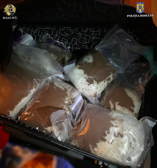 În urma investigațiilor efectuate, în cursul nopții, polițiștii rutieri au identificat în municipiul Reșița, un autoturism, care ar fi efectuat transport internațional de colete, îninteriorul căruia a fost descoperit un colet, conținând 6 pungi din material plastic, sigilate prin vidare, disimulate printre alte produse, pungi care conţineau o substanţă pulverulentă de culoare alb-cristalin, în cantitate totală de 6 kilograme de cristal, droguri de mare risc – 3-CMC.