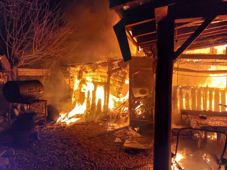 În urma incendiului manifestat pe o suprafață de aproximativ 450 de metri pătrați și care cel mai probabil a pornit de la o afumătoare nesupravegheată, au ars 40 de păsări de curte.