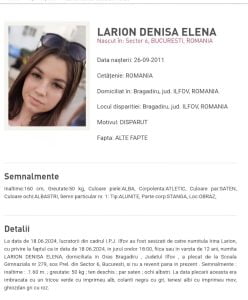 Poliția face apel la cetățeni pentru a o găsi pe minora în vârstă de 12 ani, dispărută ieri, 18 iunie 2024. Mama copilei a fost cea care a alertat autoritățile, declarând că, în jurul orei 18:03, fiica sa a plecat de la școală și nu s-a mai întors la domiciliul lor.