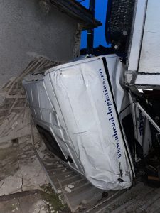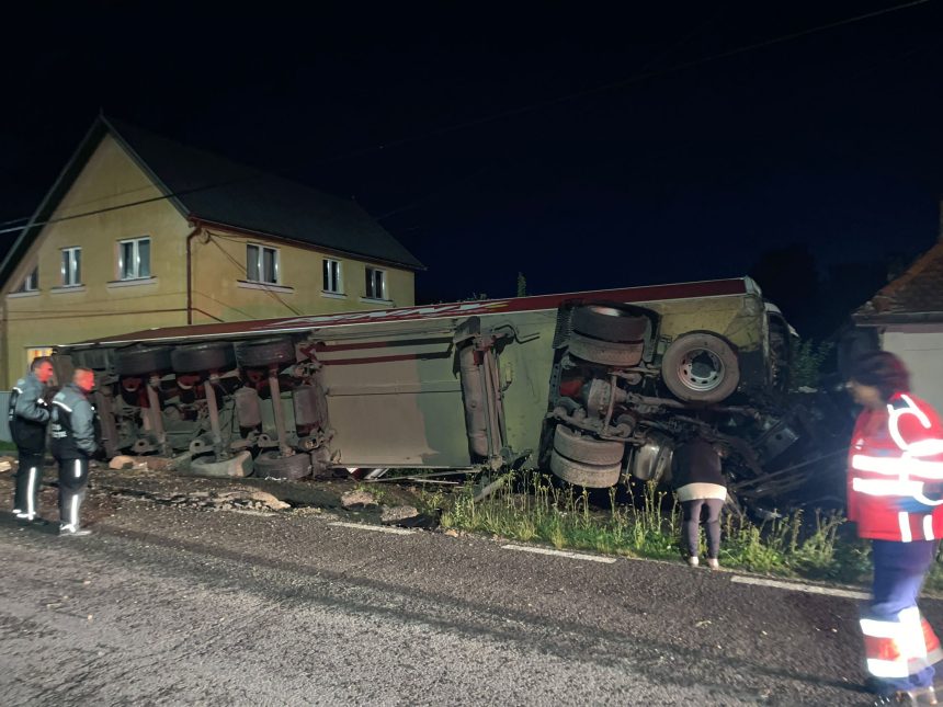 Potrivit primelor informații obținute de la fața locului, un bărbat de 30 de ani din județul Vrancea, aflat la volanul unui ansamblu de vehicule format din cap tractor și semiremorcă, a pierdut controlul asupra direcției de mers. Vehiculul, care circula din direcția Gheorgheni spre Miercurea Ciuc, a părăsit partea carosabilă, traversând un gard și oprindu-se într-o casă din localitate, unde s-a răsturnat. În urma impactului, șoferul a rămas încarcerat în cabina vehiculului.
