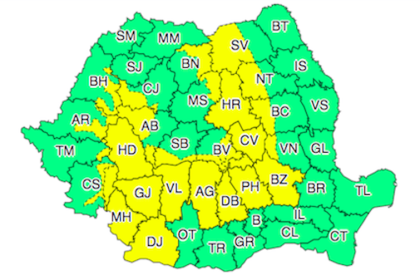 Cod galben de ploi și vijelii, emis miercuri de ANM. Avertizarea meteo este valabilă pe tot parcursul zilei de miercuri.…