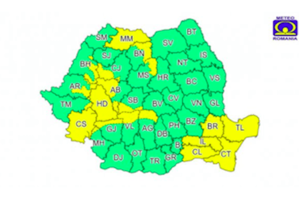 Cod galben de ploi, vijelii şi ninsori în mai multe judeţe din ţară!