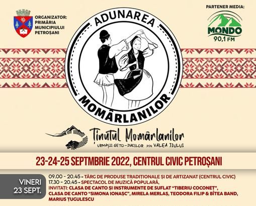 PRIMĂRIA PETROȘANI – Vă așteptăm la Adunarea Momârlanilor Ediția a 2-a, 23-25 septembrie2022